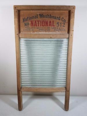 ANTIQUE VINTAGE NATIONAL WASHBOARD CO No 512 WOOD AND GLASS WASHBOARD 24" Tall