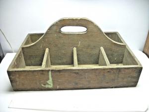 Antique~Vintage~Utensil Cutlery~Wooden Carrier Box~ Primitive