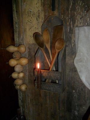 Primitive Gourd Spoons, Early Look Homestead "Make Do" Pegboard /Buttery Sign