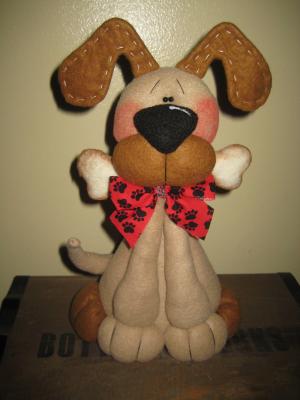 PRIMITIVE HC PUPPY DOG WITH BONE DOLL SHELF SITTER ORNIE BOWL FILLER