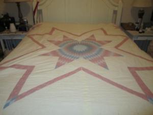 Quilt - hand stitched - pink/cream/blue - 94 x 86 inches - great condition