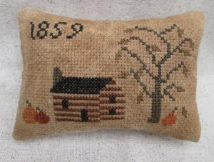 Primitive Handmade Cross Stitch Fall Pumpkins Log Cabin Pillow Tuck 5" x 3 1/2"