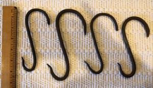 4 Antique Wrought Iron "S" Hooks Butcher Meat Garden Home Primative