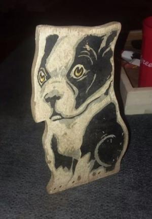 RARE ANTIQUE VINTAGE WOOD FOLK ART DOG DOOR STOP PAINTED BOSTON TERRIER