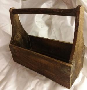 Primitive Vntg. WOODEN TOOL TOTE Caddy CARRIER Tray BANDED CORNERS Branch Handle