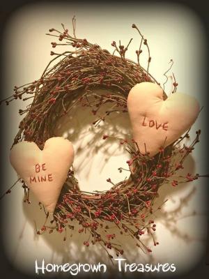Valentines Day!! Primitive Hearts on 14" Grapevine Wreath Door Hanger!