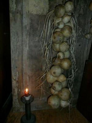 Primitive Gourd & Cob Garland w/ Light, Early Look Everyday Homestead Lighting