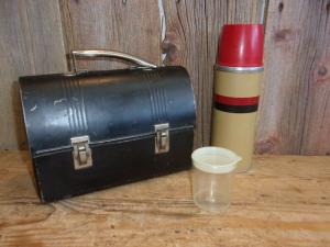 Vintage American Thermos Black Dome Top Metal Lunch Box and Thermos