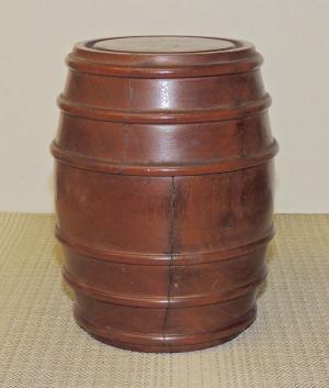 Antique or Vintage Treen Keg Shaped Turned Wood Storage Jar Cigar Holder w. Lid