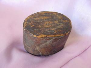 Antique Round Wood Wooden Pantry Box Lid Old Red Paint 9 1/2"