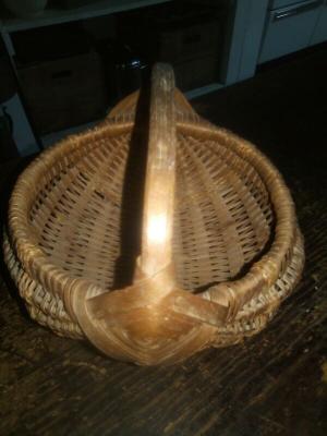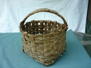ANTIQUE PRIMITIVE SPLINT GATHERING BASKET WITH GODS EYES, 1890 to 1920