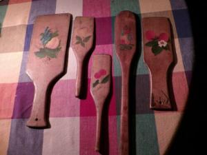 Lot of 5 Antique Wood Paddles with Hand Painted Fruit Designs