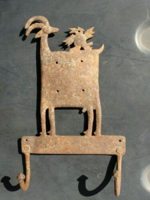 Vintage Folk Art Sheet Iron Double Hook w/ Goat