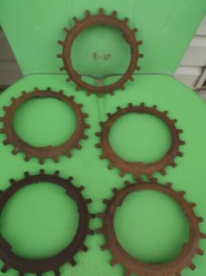 5 Vintage John Deere ? Cast Iron Planter Plates. # H 1255 B. Old Farm. Metal Art