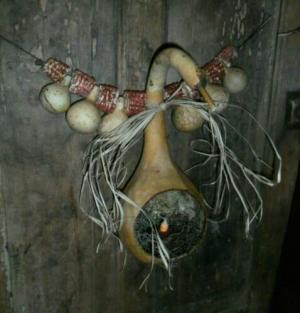 Primitive Gourd Garland Cluster,Extra Long, Early Look Homestead Dried, w/Raffia