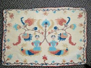 ANTIQUE CREWEL PILLOW COVER,JACOBEAN STYLE, LINEN, MYTHOLOGICAL, FLOWERS 20X14