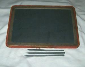 Awesome 1800''s Antique Child''s Two Sided Slate Board + 3 Slate Pencils - EXC