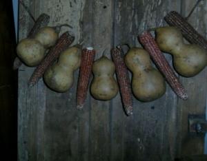 Primitive Gourd Garland, Early Look Everyday Homestead Decor w/ Cobs & Walnuts