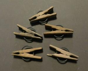 LOT OF 5 ANTIQUE PRIMITIVE ROUND SPRING CLOTHES PINS. VERY RARE!!!