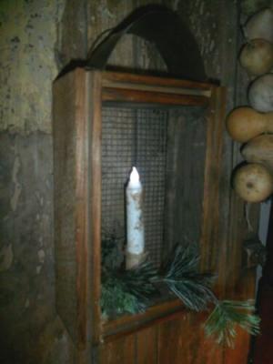 Primitive Early Look Lighting, Rustic Homestead Wooden Lantern, Battery Candle