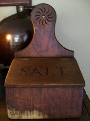 VINTAGE WOODEN NEW ENGLAND **SALT BOX** WITH WOODEN SALT SCOOP