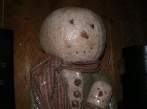 Primitive Christmas Snowman With His Tiny Snowman Doll - Ornies - Winter Holiday