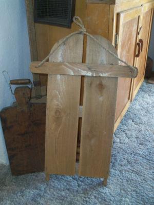 VINTAGE HAND MADE WOOD SNOW SLEIGH WITH ROPE HANGER--ROUGH CUT WOOD