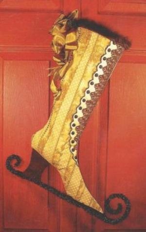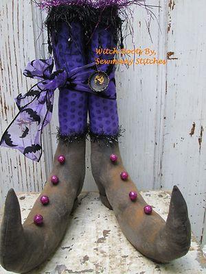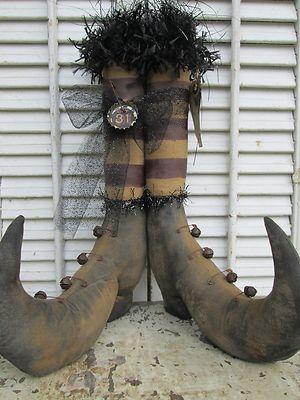 Primitive Halloween Witch Boots w/Painted Striped Stockings~Sewmany Stitches