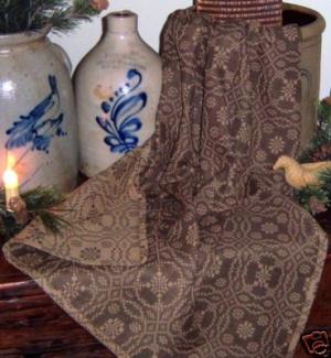 Primitive Vtg Style Woven Coverlet Tan Brown Table Rectangle Throw 32"x48"