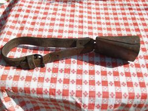 ANTIQUE FARM FRESH, BULL / COW LRG BELL w/ LEATHER COLLAR, HAND FORGED