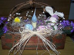 Primitive Cheese Box Antique Easter BUNNY Basket Light ~ OOAK ~ NR