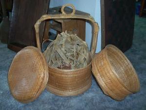 VINTAGE STACKING BASKET--SEWING BASKET--COLLECTING BASKET
