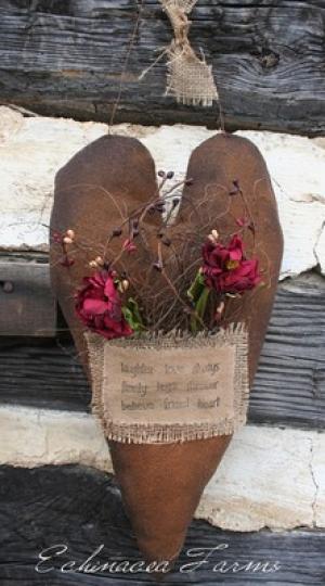 PRIMITIVE FELT HEART POCKET DOOR HANGER DECOR COUNTRY COTTAGE LODGE VALENTINES