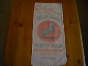 Vintage Flour Sack~Green Horse~"Pillsbury Product" Intact made in USA 25lb.