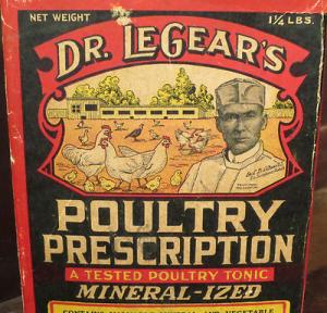 Dr. LEGEARS Poultry Prescription Old Chicken Quack Medicine Advertising Sign Box