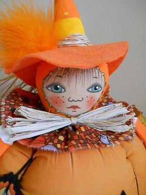 Primitive Folk Art Halloween Candy Corn Doll in Pumkin