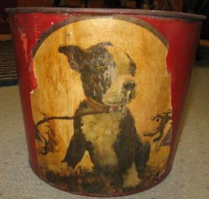 OLD ANTIQUE STEEL PRIMITIVE WATER SAP BUCKET RED PAINT SPANIEL