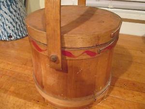 VINTAGE FIRKIN/ SUGAR BUCKET WITH HANDLE AND LID