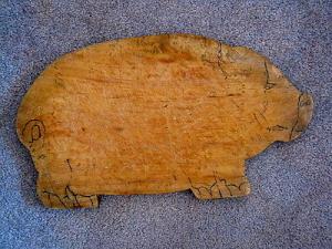 Old Solid Piggie Cutting/Bread Board-Well Used-Hanger Wire On Back-Great Patina