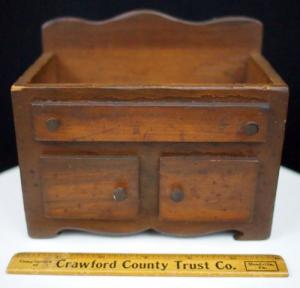 vtg Primitive Wood Dresser Recipe BOX Folk Art Country Rustic Trinket