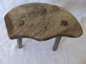 RARE ANTIQUE PRIMITIVE VERY VERY OLD WOODEN WOOD HANDMADE STOOL CHAIR TRIPOD