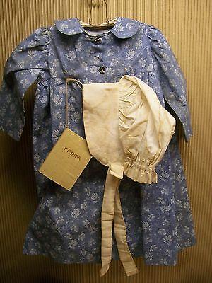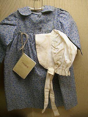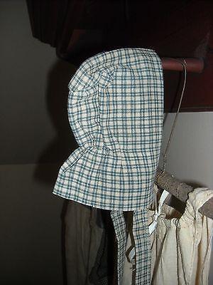 Primitive prairie lil' dress/bonnet/primer school thyme blue calico