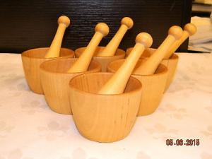 Arts & Crafts Lot of 6 Solid Wood Mortar and Pestle sets Spices/Med - Brand New