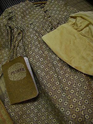 Primitive prairie little pioneer dress tan calico with bonnet tea stained