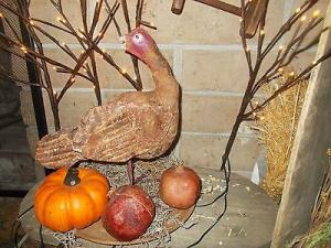 PRIMITIVE INSPIRED GRUNGY TURKEY CENTERPIECE W/ DRIED POMEGRANATES-THANKSGIVING