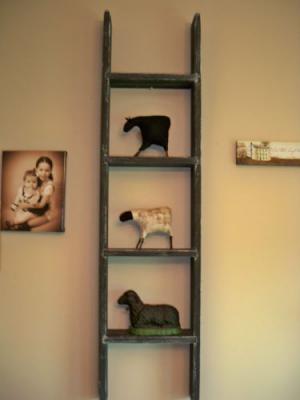 Primitive Wooden Display Ladder Painted Aged Black 4 Feet Tall!! Made in Ohio