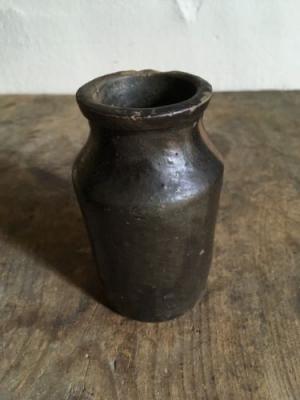 Antique Large Brown Stoneware Inkwell Ink Holder Early Desk Writing AAFA