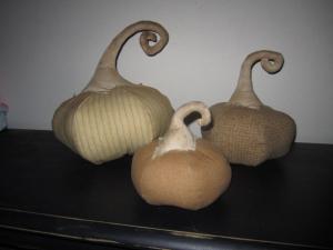 Primitive Pumpkins - set of 3 -Fall/Halloween - mustard - ticking