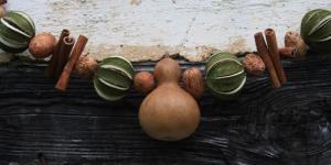 PRIMITIVE GOURD NUT & CINNAMON GARLAND * NATURAL GARDEN COLONIAL FARMHOUSE