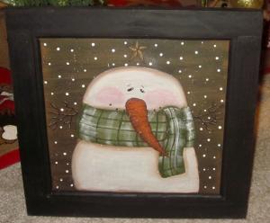 *~*PRIMITIVE*~* HP FOLK ART PRIM WINTER SNOWMEN SCENE *~* TREES *~* BOARD